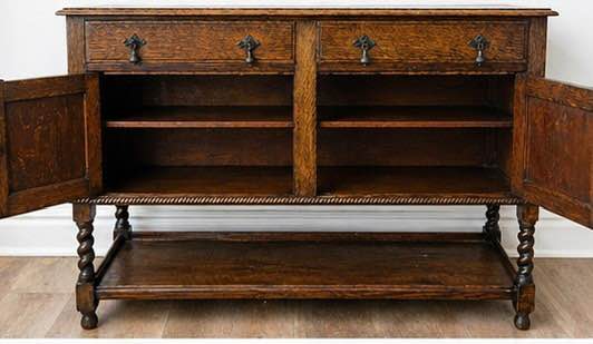 Antique Barley Twist Oak Buffet / Sideboard Cabinet ~ ca 1920s