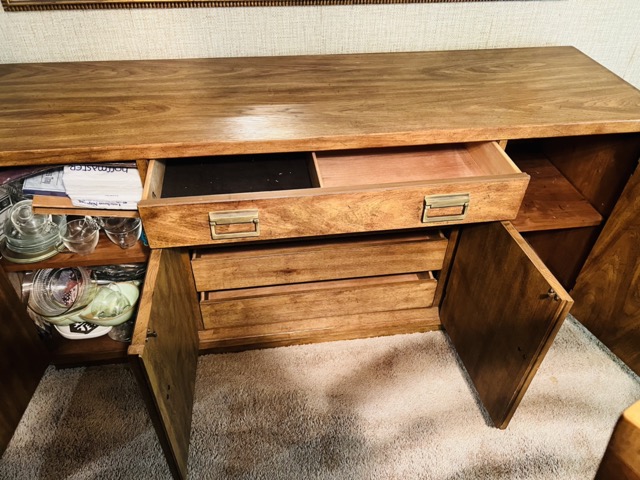 Beautiful and sturdy Drexel Credenza. Hardly used, mostly for decoration. It has matching dining table and chairs, and buffet/server, listed separately. Condition like new, No scratch. No pet, no smoker house. Size 85 x 19 x 30 in tall.