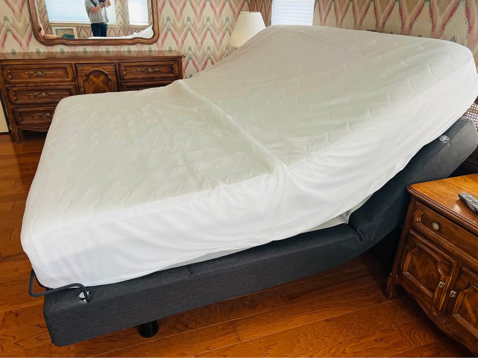 Bed size: King Comfort level: Adjustable Premium King size adjustable bed setup featuring a Reverie power base and Eco Comfort mattress, both in great condition. Perfect upgrade for comfort, back support, or luxury sleep. Features: • King size (plenty of space) • Head & foot adjustable positions • Built-in massage function • Wireless remote included • Quiet, smooth operation • Modern upholstered base • Comfortable Eco Comfort mattress Condition: Clean, gently used, and fully functional. No major issues.