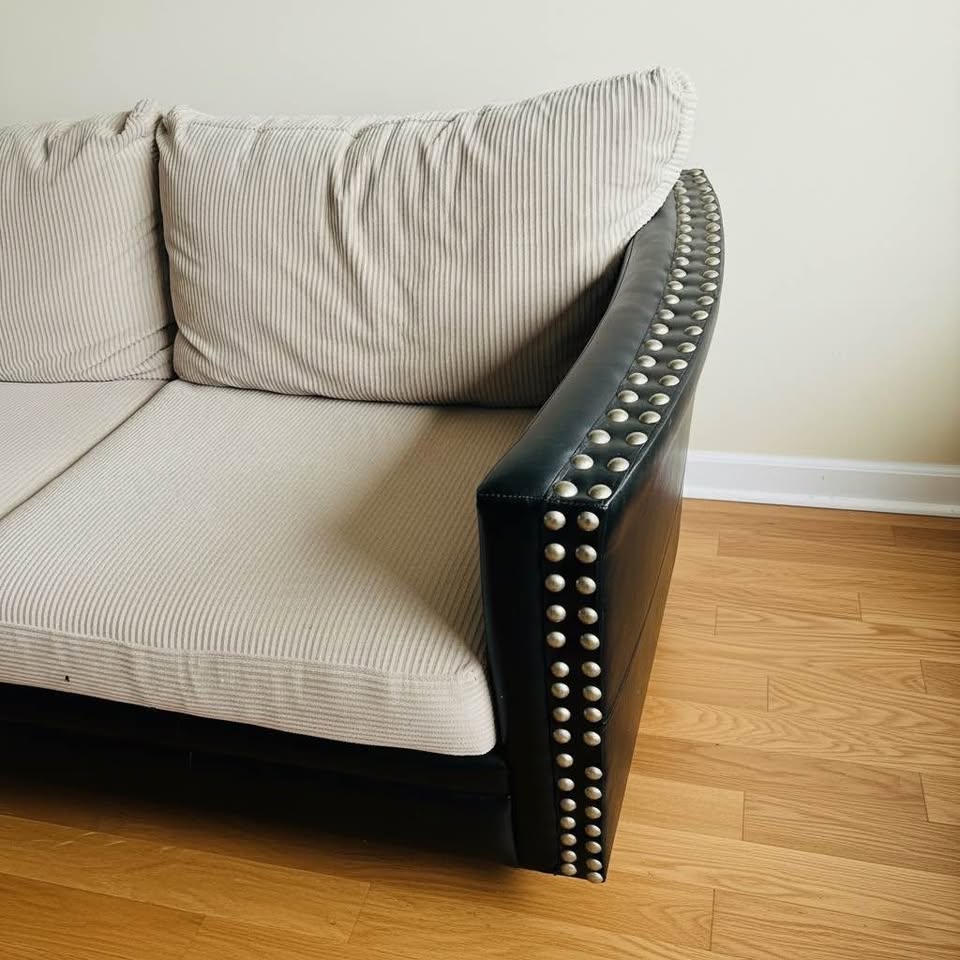 Modern Sectional Sofa w/ Chaise – Goose Feather Cushions, Nailhead Trim
