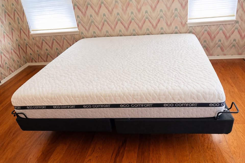 Bed size: King Comfort level: Adjustable Premium King size adjustable bed setup featuring a Reverie power base and Eco Comfort mattress, both in great condition. Perfect upgrade for comfort, back support, or luxury sleep. Features: • King size (plenty of space) • Head & foot adjustable positions • Built-in massage function • Wireless remote included • Quiet, smooth operation • Modern upholstered base • Comfortable Eco Comfort mattress Condition: Clean, gently used, and fully functional. No major issues.