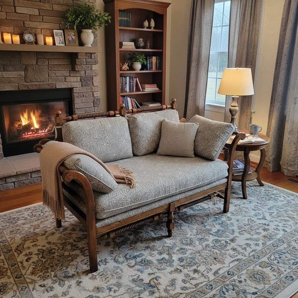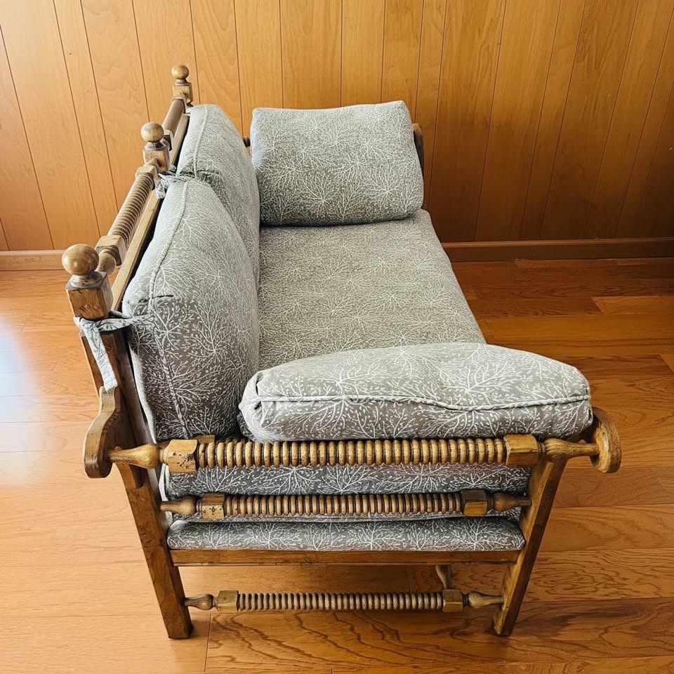 Sofa type: Love seat Decor style: Farmhouse Elevate your space with this beautifully crafted vintage Bernhardt “Flair” spindle sofa—an uncommon piece that blends classic American craftsmanship with English cottage charm. Constructed from solid wood with intricate turned spindle detailing along the arms, back, and base, this sofa has the kind of character and quality rarely found in modern furniture. The silhouette is both architectural and inviting—perfect as a statement piece in a curated living room, reading nook, or entryway. The neutral upholstered cushions soften the look and make it move-in ready, while still allowing easy customization if you want to reupholster for a designer finish. Why this piece stands out: • Authentic Bernhardt craftsmanship (Lenoir, NC) • Solid wood frame—built to last decades • Distinctive spindle design (highly sought-after vintage style) • Versatile: works in farmhouse, traditional, transitional, or collected interiors • Compact sofa size—designer look without bulky footprint Condition: Excellent vintage condition. Structurally solid with light age-appropriate wear that adds character. Cushions are clean and comfortable. Measurements Frame 6 ft long x 28 in deep x 31 in tall Seat 44 in long x 23 in deep