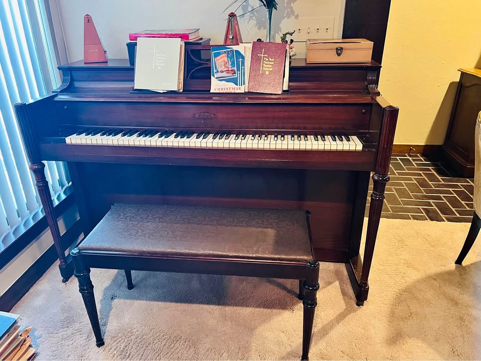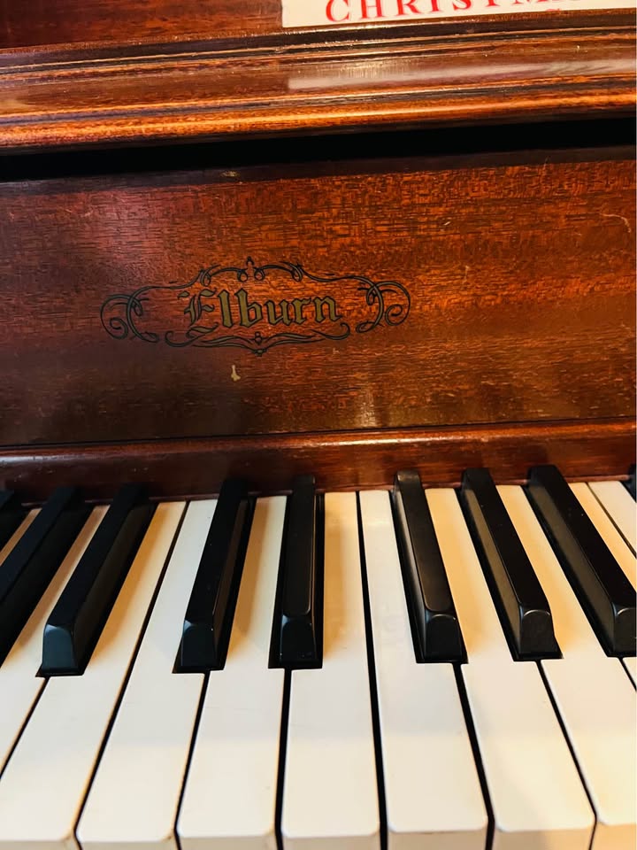 Vintage Elburn Upright Piano with Bench – Solid Wood – Needs Tuning